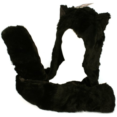 Winter Adult Unisex Fall Super Soft Animal Faux Fake Fur Scarf attached to Trooper Trapper Hat Cap with Paw Print Pocket Mitten Gloves. Hat is roomy and comfortable. Everyone will be jealous! Great for High School, College Students or anyone that wants to have fun! Great QualityNew Soft winter soft and plush scarf trooper trapper hat with scarf with paw print mittens, luxurious interior soft plush lining. No need to get gloves for the winter, this is a 3 in 1. Matching boot, leg warmer covers and wrist warmers. Unbelievably soft and luxurious feel. Look and feel rich and no one will ever know. No animals were harmed to make this beautiful scarf headwear. Great comfortable fit. Great for men, ladies and teens. Back to school in style, ideal for Fall and Winter. GREAT Quality! Sold in fine department stores. Each individually packaged. Makes a great gift. Other matching coordinate and so much more in our store..../ Adult Winter Faux Fake Animal Fur Scarf Trapper Hat with Paw Mittens Gloves Black / Hat Hoods